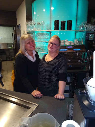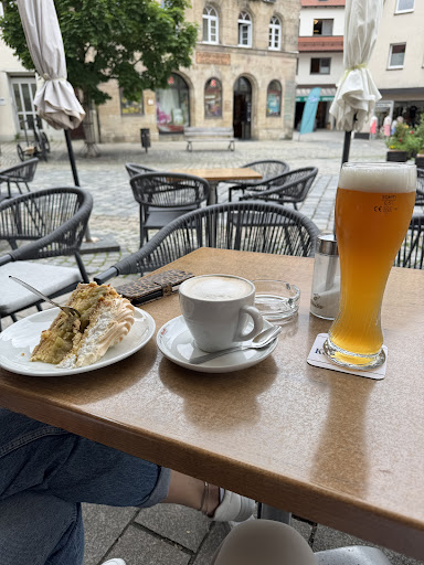 Ich bestelle CoffeeToGo. Aber die weigern sich, unsere Recup Becher aufzufüllen, möchten uns Ihre eigenen Becher verkaufen...Soso, ich denke mir meinen Teil. Wir entscheiden uns dann dazu, den Kaffee eben vor Ort trinken. Ich bestelle zwei Kaffee Latte. Macht zusammen 11 Euro mit Trinkgeld. So viel habe ich noch nie für zwei Latte bezahlt. Aber man sitzt schön und die Bedienung ist echt nett. Und der Kaffee schmeckt auch lecker 😋. Doch es geht leider noch weiter: auf dem Herrenklo war die Lampe defekt. Man musste sich in stockfinsterer Dunkelheit zur Kloschüssel tasten (). Nach dem Geschäft, oh Schreck: meine Tastversuche fanden keine Klopapierrolle. Also irgendwie zur Türe, und die einen Spaltbreit geöffnet, dass ein bisschen Licht reinkommt: tatsächlich es gibt gar keinen Klopapierabroller, nur Dübellöcher in der Wand🙈. Aber ich fand eine Ersatzrolle hinter der Kloschüssel ganz oben auf dem dreckigen Fenstersims.... Bei den Herren war außerdem eines der drei Pissoires mit Packband zugeklebt, bei den Damen war eine der lediglich zwei Toiletten defekt, außer Betrieb. Alles in allem: außen hui, Toiletten ....,...