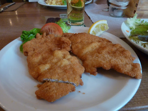 Wir haben auf der Terrasse gegessen. Ist eine etwas in die Jahre gekommene Gaststätte. Leider nur sehr kleine Karte. 1/2 Hähnchen, waren ok, für unseren Geschmack zu lasch und etwas zu trocken, aber das ist nur unsere Meinung. Die Beilagen waren super, großer Salat mit Schmanddressing und eine riesengroße Portion Pommes. Ketchup und Majo wurden dazu serviert. Der Wirt war sehr freundlich. Alles was rausgegangen ist, sah sehr gut aus. Eigentlich würde ich 3 1/2 Sterne geben, da das nicht geht, runde ich...
