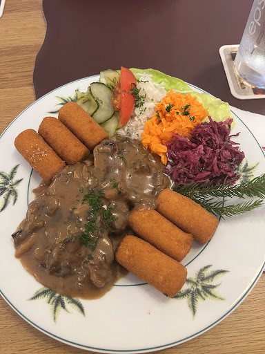Read moreBürgerstuben hat einen Ruf in der Umgebung für gutes Wildfleisch, entsprechend wollten wir es auch mal ausprobieren. Leider wurden unsere hohen Erwartungen nicht ganz erfüllt. Qualitativ alles sicherlich toll, da lokale Lieferketten versprochen werden. Preis und Menge harmonieren allerdings dann doch nicht ganz, und auch geschmacklich war es - zumindest bei unserem einmaligen Besuch - kein Highlight. Für ~27€ bekommt man ein Hirschrückensteak mit Kroketten, Pilzrahmsoße und Beilagensalat. Die Medaillons waren leider ziemlich dünn und auch nur vier an der Zahl, schätzungsweise nicht mehr als 150 Gramm. Geschmacklich gut und kross gebraten, daher aber leider etwas trocken. Die Soße war lecker, ebenso wie Salat und Kroketten.