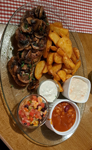 Wir hatten Steaks wirklich zu empfehlen! Das Fleisch ist aus unserer Region und wird auch nur von 1 Bauern bezogen geschmacklich ein Träumen und auf den Punkt gebraten. Die Beilagen alle ohne Ausnahme sehr sehr lecker und gut abgeschmeckt , ebenso die Dips.