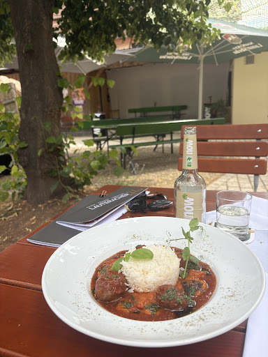 Nachdem bei mir hochwertiges Essen aber auf gleicher Ebene mit gemütlichem Ambiente und gutem Wein steht :-), noch weitere Details: Sowohl Innenbereich als auch Biergarten liebevoll und wunderschön eingerichtet, Sandkasten für die Kleine und Möglichkeit zum rumklettern und rumflitzen für die Jungs... Ohne Kids hätten wir es noch deutlich länger ausgehalten!