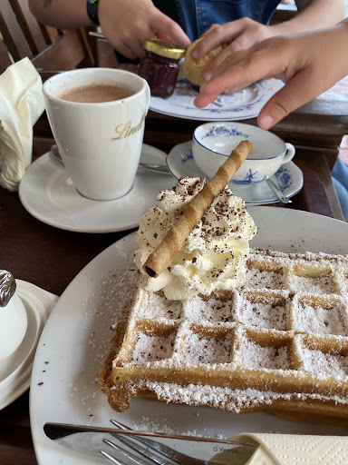 Read moreDieses Café ist einfach liebenswert. Eine tolle Auswahl an leckeren Speisen. Ein Wohlfühl-Ambiente: es ging für jedes Bedürfnis den richtigen Sitzplatz. :) Eine tolle verführerische Kuchentheke!!! Die Waffeln sind fantastisch! Das Personal einfach liebenswert, zuvorkommend und sehr kompetent. Kinderfreundlich, trotz zahlreicher Deko! Die einzigen Verbesserungsvorschläge: Das Eis schmeckt mir persönlich nicht. Ich finde es schmeckt sehr künstlich. Was nicht bedeutet dass es das ist. Es gibt hier Kaffee aus dem Automaten, das ist allerdings verständlich. Da eine Siebträgermaschine viel mehr Zeitaufwand bedeutet und das bei voller Besucherzahl nicht machbar wäre, vermutlich. Ein fachmännischer Kaffee würde den handwerklichen schmackhaften Gebäcken jedoch sehr schmeicheln. ABER: Der Tee und die heisse Schokolade sind Top. Muss eben auch nicht immer Kaffee sein. Wenn ich diesbezüglich einen Wunsch frei hätte würde ich den Lindt-Kakao gegen z.B. BlömBoom oder eine vergleichbare heiße Schokolade tauschen die mehr gegen Kinderarbeit und Co. unternimmt. Lindt hat seine besten Zeiten hinter sich und hat sich nicht weiter entwickelt. Die heisse Schokolade schmeckt dennoch sehr gut.