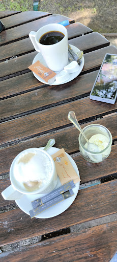Read moreSchönes und idyllisch gelegenes Café direkt im Schlosspark. Man sitzt hier bei gutem Wetter herrlich entspannt draußen. Leider haben wir gestern vor der Bestellung mindestens 15-20 Minuten darauf warten müssen, bis überhaupt jemand an unseren Tisch kam. Allgemein fiel auf, dass es sich um junges und relativ unerfahrenes Personal handelte. Als dann meine Johannesbeerschorle an den Tisch gebracht wurde, fiel mir sofort auf den ersten Blick auf, dass aus der kleinen Flasche bereits ein guter Teil fehlte Und die Flasche bereits geöffnet war. Ich habe die junge Bedienung darauf hingewiesen und sie hat die Flasche wieder mit nach drinnen genommen. Sie kam nach ein paar Minuten zurück und entschuldigte sich und brachte eine volle Flasche. Sie sagte, dass die andere Flasche bereits zum Mischen eines Cocktails benutzt worden wäre…. Entschuldigung, aber so etwas darf nicht passieren. Als wir nach dem Schloss Besuch hier noch einmal eingekehrt sind, haben wir mit einer größeren Gruppe Kaffee und Kuchen gegessen und es war alles sehr lecker und es gab eine riesige Kuchen Auswahl. Leider war dieses Mal das Glas für meine Johannesbeerschorle schlecht gespült und es war noch Lippenstift vom Vorgänger vorhanden. Sorry, aber so etwas darf auch nicht passieren. Ich habe dann lieber aus der Flasche getrunken. Fazit: es gibt eine tolle Kuchen Auswahl der auch sehr lecker schmeckt. Die warmen Getränke waren auch in Ordnung, aber im Servicebereich gibt es definitiv...