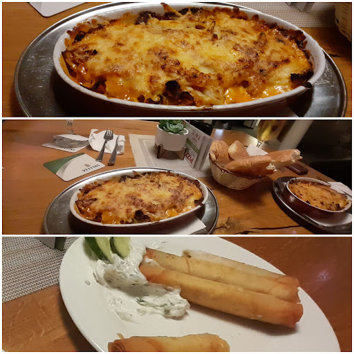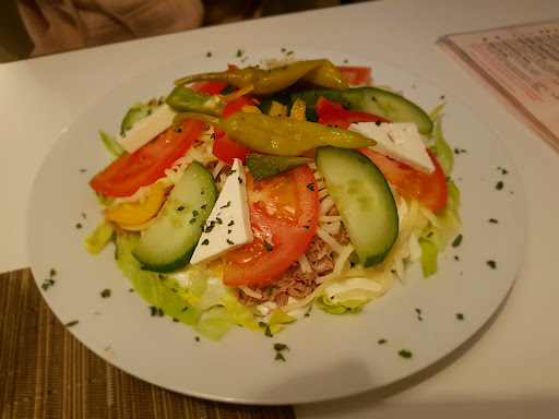Essen war relativ gut, Salat sehr frisch und lecker. Steak in Ordnung, aber beim Rumpsteak mit Pilzen musste man die Pilze schon suchen ;-) Flambierter Teller wurde ohne Flammen serviert .... Pizzen waren gut und zu empfehlen. Was die zwei Punkte Abzug angeht: Das Ambiente! Wenn man überhaupt davon sprechen kann. Sehr kahler ungemütlicher Raum. Es wäre leicht hier durch etwas Pflanzen, Blumen, Deko, Stellwände, Tischdecken usw. Abhilfe zu schaffen und alles einladender zu gestalten. Eine viel zu breite, unhandliche, einlaminierte Speisekarte, die den “Flyern“ für Speisen zum Mitnehmen entspricht, wird am Tisch den Kunden gereicht. Eine vernünftige Speisekarte, also z.B. ein kleines Büchlein, wie in anderen Restaurants fehlt. Der erste etwas negative Eindruck wird hier so leider schon von vorne herein bestätigt! Die Auswahl der Speisen würde ich ebenfalls stark reduzieren, nach dem Motto "Qualität statt Quantität!" Das kommt immer besser an. Dafür wären mit Sicherheit auch viele Gäste bereit ein paar Euro mehr zu zahlen. Hintergrundmusik ist trotz vorhandener Lautsprecher Fehlanzeige! Man glaubt gar nicht, wie dies das Ganze aufwerten würde, bzw. wie hierdurch jetzt der Gesamteindruck nach unten gezogen wird. Insgesamt fehlt einfach das Einladende, die Gemütlichkeit, die Atmosphäre. Alles wirkt trist und lieblos. Plus: Die sehr moderaten Preisen und die Bedienung (feundlich und zuvorkommend), sonst wären es mir nur zwei Sterne...