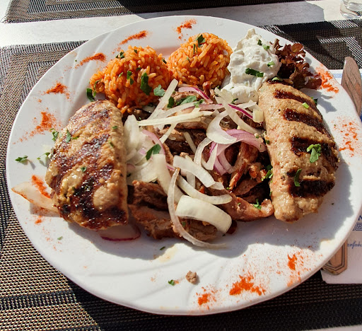 Read moreAls erstes muss man sagen das die Sitzgelegenheiten in einem sehr reperaturbedürftigen Zustand sind. Die Rückenlehne unserer Rückenschmerzenfördernde Sitzbank streckte sich uns schon ganz allein entgegen. Die jungen Bedienungen waren auch leider schnell genervt, weil wir ehrlich waren und gesagt haben das die Zwiebelsuppe, die wir fast unangetastet haben zurückgehen lassen, aber trotzdem voll bezahlen durften, ganz furchtbar geschmeckt hat! Das Gyros allerdings ist total Ok und das Souflaki (schreibt man das so?) ebenfalls! Saganaki hatte so gut wie keinen Geschmack und ein klecks Tzaziki hätte nicht geschadet. Die Dekopeperonie war lecker und die oldschool Orangendeko muss niemand haben! Ganz kurios war die Sour Cream der Folienkartoffel. Ich kann nicht beschreiben was es war, auf jeden Fall keine Sour Cream... sah etwas aus wie Eis auf der Kartoffel! Was Italienische und Indische Gerichte auf der mit Werbung vollgestopft Speisekarte eines Griechischen Restaurants zu suchen haben, kann ich mir nicht erklären und sind mehr als fehl am Platz! Tipp... Unbedingt nachrechnen wenn die Rechnung geteilt wird. Sie wollte uns auch noch 10 Euro mehr abknöpfen, obwohl mehr essen zurück gegangen ist, als gegessen wurde! Die Getränke...