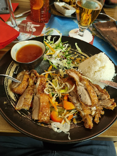 Read moreWartezeit aufs Essen war eine knappe Stunde für zwei Personen obwohl es ziemlich leer war im Restaurant. Die Frühlingsrollen waren viel zu hart und sind beim aufpieksen in 1000 Teile zersprungen. Auch haben sie eigentlich nur nach fritiertem Teig geschmeckt. Erst als wir bei der Hauptspeise darauf aufmerksam gemacht haben, dass wir eine Vorspeise bestellt hatten, kam diese. Das gleiche war bei anderen Gästen auch. Die Ente süß sauer sieht auf den ersten Blick recht groß aus bis man merkt, dass sie auf Gemüse liegt. Sie hat kaum Fleisch und ist ziemlich klein. Der Salat passt überhaupt nicht zu der Ente. Der Reis war gut, süß saure Soße war zu wenig da. Die Sojasoße auf dem Tisch soll laut Etikett gekühlt sein, steht aber dauerhaft auf dem Tisch und war keineswegs kühl. Insgesamt ein großes...