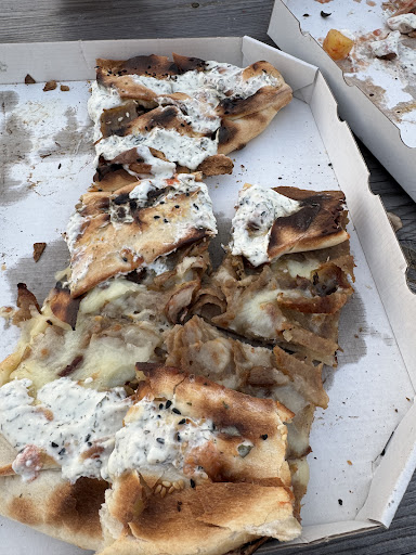 Lahmacun? Gab’s auch nicht. Dann habe ich mich für eine Pide entschieden – was ich bekommen habe, war mehr eine Art überladene Soßenpizza. Der Geschmack war überhaupt nicht stimmig, der Boden war komplett verbrannt und ungenießbar.
