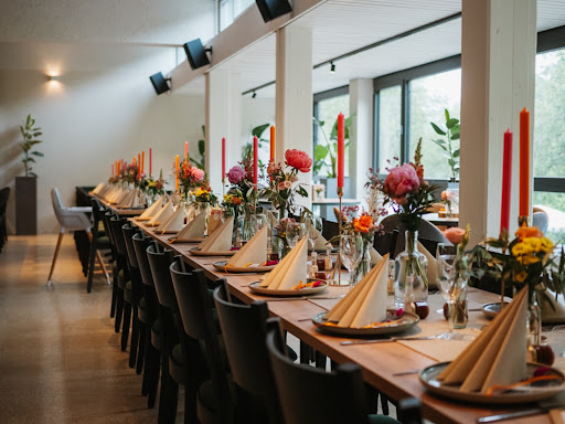 Read moreWir waren zum Familienbrunch hier. Für Familien mit kleineren Kindern ist das sicher zu empfehlen, ein Spielplatz draußen, die Kinder konnten ungezwungen im Speisesaal herumrennen. Für uns war der Geräuschpegel viel zu hoch, hatten leider auch einen Tisch in der Mitte. Für Ruhe suchende empfiehlt sich bei Reservierung ein Tisch am Rand. Das Essen ist leider auch nur mittelprächtig, das Frühstück besteht aus zwei Sorten Schinken und Salami, sowie eine Standardkäseauswahl. Die Eierspeisen bestanden aus Rührei, es gab Pancakes und einen Obstsalat. Mein kulinarisches Highlight war Rote Beete mit Feta. Mittagessen leider dasselbe Bild ... mittelprächtig ... Gute Spätzle, Käsespätzle, Kartoffelsalat. Der Braten war faserig und fettig zugleich, die Putenrouladen staubtrocken. Der Nachtisch war sehr enttäuschend, ein harter trockener Schokokuchen, eine Jogurtcreme mit Beeren und eine Art kalter Hund mit Orangencreme, auch sehr hart. Essen also absoluter Durchschnitt mit wenig Auswahl. Was uns sehr an diesem Tag gestört hat, war die Unprofessionalität des Personals das aber sehr nett war. Das Buffet war verkleckert und wurde auch nicht geputzt. Getränke kamen ewig nicht, das Personal war offensichtlich überfordert da es Probleme mit der Spülmaschine gab. Wir sollten unser Besteck behalten, was sich auch als besser erwies, als wir gesehen haben, wie die wohl fehlende Spülmaschine mit einem Spritzreiniger und einem Spültuch zum Tellerputzen ersetzt wurde. Ich hatte doch hygienische Bedenken... Letzter negativer Punkt: Zum Preis von 36 € gab es nur eine offene Flasche O -Saft auf dem Tisch. Sämtliche andere Getränke wie Kaffee, Wasser mussten bestellt und bezahlt werden. Apropos Wasser. Für eine Flasche aufgesprudeltes Tafelwasser, also mit Sodastream oder ähnlichem hat man schlappe 6,90 € bezahlt. Das ist doch enorm. Fazit: Nette Location, vor allem mit Familien mit kleinen Kindern, überfordertes ungelerntes, aber freundliches Personal, hygienische Mängel, durchschnittliches Essen mit wenig Auswahl und ein absolut nicht passendes Preis-Leistungs-Verhältnis. Da gibt es deutlich besseres in diesem Preissegment. Wir werden nicht wiederkommen, obwohl es sehr nah...