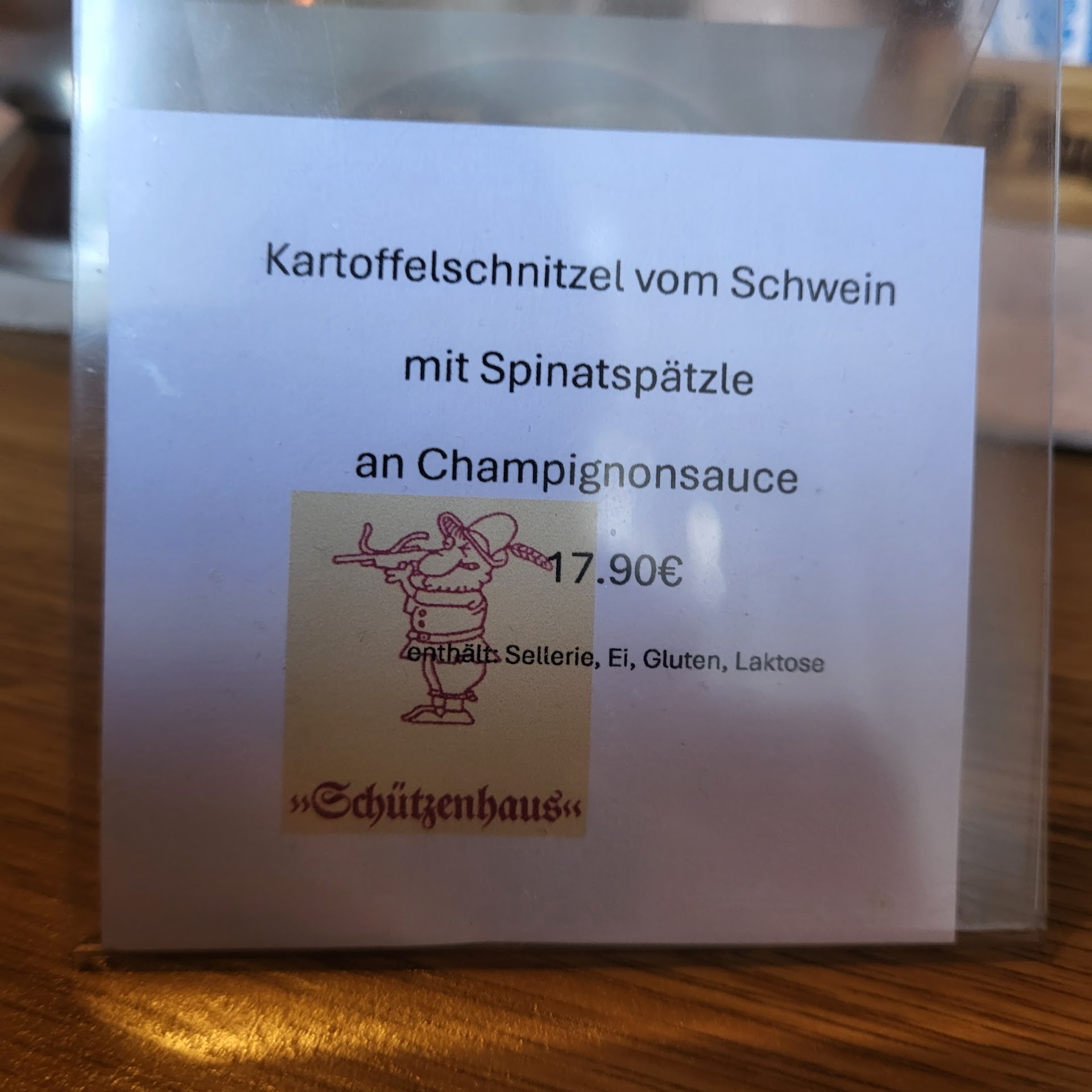 Wir haben uns nach dem dritten Eröffnungstag des SCHÜTZENHAUSES mit der Familie zu fünft einen Tisch reserviert (unbedingt nötig), haben den auch bei Ankunft bekommen und wurden auch gleich freundlich bedient.