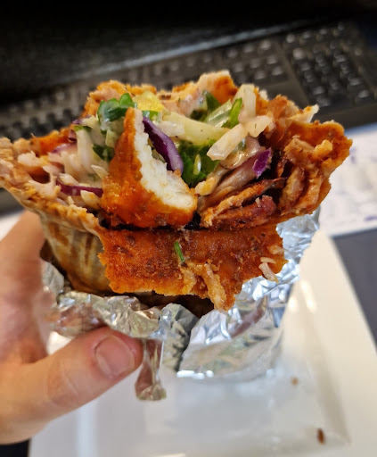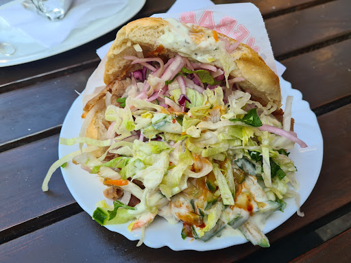 Ein sehr sauberer Laden. Das Fleisch (Kalb & Hähnchen) ist knusprig und geschmacklich sehr gut. Der Döner wird ganz klassisch mit Salat, Rotkraut, Zwiebeln, Gurke & Tomate gefüllt. Auch die Soßenauswahl ist nicht groß. Ganz typisch: Kräuter-, Knoblauch- & Scharfe Soße. Geschmacklich überzeugt der Döner aber dennoch absolut!