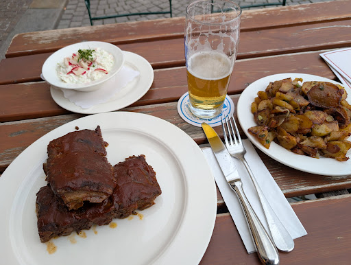 Read moreIt was the first restaurant we went to as soon as we got to Leipzig after 18 hrs of travel across time zones. The hotel receptionist pointed us to a local favorite. Our first impression, very accommodating; friendly servers & employees, which is a rarity in Germany. The kitchen was closed by the time we were seated, after a few Deutsche exchanges between servers, they decide to serve us & the food did not disappoint. We ordered server recommended restaurant favorites- roast of pork, crisp whole knuckle of pork & Augustiner Beef Goulash. All were an excellent variety of our first Bavarian meal. The size & crisp/crunchiness was perfect, I would have personally loved some citrus/vinegar on the side option to help cut through the pork fat but hey, I was not going to break centuries old Bavarian tradition. So, down went a couple of recommended beers, which were light & crisp…a proper accompaniment to the foods we ordered. On our second visit, we ordered a light appetizer platter as we tried to relax after a full day of sightseeing, also excellent. I loved the meatballs & cheeses! Overall, it was an excellent experience, they do get busy on the weekends & things might feel rushed. Bring your patience along & you’ll absolutely...