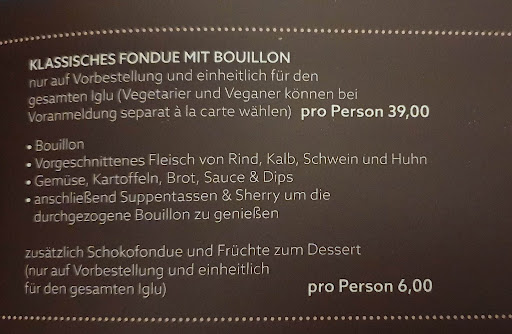 Read moreDie Idee vom Fondue unter Sternen und über den Dächern von Leipzig klingt toll und es hätte gut werden können. Leider steht das Iglu unter einem Dach und direkt neben einer etwa 1m hohen Mauer. Wir verabschiedeten uns also vom Ausblick. Gemütlichkeit und gutes Essen wären genug. Leider war es so kalt, dass wir die Jacken anlassen mussten, um weitere Decken baten und trotzdem froren. Der Lüfter mit der Leistung eines Föhns schaffte es nicht annähernd eine angenehme Temperatur zu erzeugen. Tschüß Gemütlichkeit. Letzte Hoffnung: warme Getränke und gutes Essen. Leider dauerte es bis ins die Getränke erreichten, das Essen ließ noch länger auf sich warten. Es kam dann etwas Fleisch, Gemüse, Brot und Dips. Zu viert am Tisch, sahen wir uns an, was wir für ca. 160€ bekommen hatten. Satt würden wir davon nicht werden. Jeder mit nur einem Spieß dauerte es so lang, dass Brot den Magen füllte und wenigstens das könnte nachbestellt werden. Das taten wir dann auch und bekamen nach 20min endlich 6 Scheiben. Wir fragten nach den in Aussicht gestellten Suppentassen, um die Brühe mit dem großen Teil unseres Gemüses mit dem spärlichen Brot als Suppe zu Essen - vielleicht würden wir ja so noch satt werden. Die Bedienung wusste von nix, erkundigte sich aber. Sie kam zurück, allerdings ohne Suppentassen, stattdessen nahm unseren Topf mit. Zurück kam sie mit 4 winzigen Gläsern etwa zur Hälfte mit Brühe gefüllt - vom Gemüse keine Spur. Das war definitiv nicht alles was im Topf war, aber zu spät, unser Essen war weg. In der Zwischenzeit warteten wir wieder auf die Getränke, 3 von 4 erreichten uns. Das letzte stornieren wir, da wir bereit waren zu gehen - schöner wurde es nun nicht mehr - leider wurde es nie von der Rechnung genommen. Selbst die Aufforderung nach der Rechnung wurde lange nicht bearbeitet, nicht mal als wir in der Bar warteten, um nicht weiter zu frieren. Fazit: Absolut nicht zu empfehlen. Eine Rechnung von mehr als 200€ für 4 Personen, frieren und Ärger -...