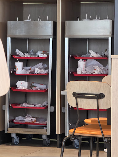 Schon beim Betreten fiel mir sofort auf, dass die Abstellwagen überfüllt waren – ein Problem, das ich in dieser Filiale sehr selten anders erlebt habe. Verärgert darüber, dass man an solchen schmutzigen Tischen essen soll, begann ich, Fotos zu machen. Als eine Mitarbeiterin bemerkte, dass ich ein Foto von dem überfüllten Wagen machte, wurde plötzlich gehandelt: Sie nahm die Wagen sofort mit und entleerte sie.