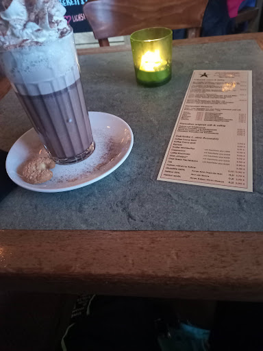 Really unusual ambience in the best sense; it's like diving through a portal when entering here ~ Not the warmest of services at least from a subjective side but my cocoa on the other hand was very warm and quickly on my table. It also tasted quite decent with a well balanced dose of brown sugar :o I also liked that there are real candles on the table. Even at 11 am it kinda feels right and is not a given in my experience Soo it's neat!
