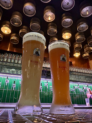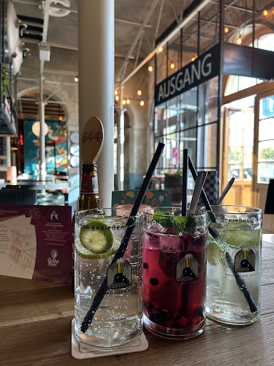 Read moreDas Doldenmädel gibt es erst seit ca. 3 Jahren. Das Restaurant teilt sich die Küche mit dem benachbarten Bayerischen Bahnhof, es gibt also die gleichen Gerichte, kulinarisch also durchschnitt, aber mit hervorragenden deftigen Gerichten. Die Schweinshaxe gibt es leider erst ab 18 Uhr und wenn man mit größeren Gruppen kommt und Schweinshaxe möchte sollte man vorbestellen. Die Schweinshaxe ist sensationell gut, jeden Tag frisch zubereitet, knusprig und sicher die beste die man in Leipzig bekommen kann (und auch über Leipzig hinaus). Das Doldenmädel ist angelehnt an den Bayerischen Bahnhof, hat aber ein moderneres Konzept. Unter anderem gibt es über 20 verschiedene (auch Craft-) Biere vom Fass, frisch gezapft und auch zahllose verschiedene Flaschenbiere zusätzlich zu den aus dem Bayerischen Bahnhof bekannten Biersorten. Es gilt Selbstbedienung am Tresen, auch Essen wird dort bestellt und wird dann zum Tisch gebracht. Deshalb entstehen oft längere Schlangen am Tresen und man muss auch mal ne Weile warten. Das Restaurant hat im Inneren eine modernes Industrial-Style Konzept und insgesamt ein moderneres Ambiente als im Bayerischen Bahnhof nebenan. Hierfür wurde die alte Schalterhalle ausgebaut und mit zentraler Bar ausgestattet. Insgesamt sehr gelungen!...