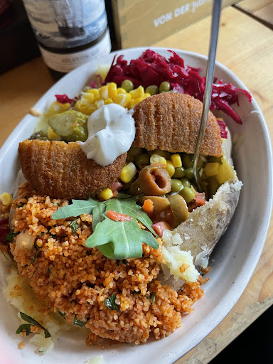 Read morePainfully slow. No jacket potato (that is already cooked) should take 20 minutes to fill, I can only assume that they deliberately take a long time in a "mustafas Gemüse kebab" kind of way? The fillings are good and the potatoes are well baked but it's not uncommon to end up with a barely warm potato because they take so long to fill it. Seems like they get 10+ spuds out of the oven at once and take their sweet...