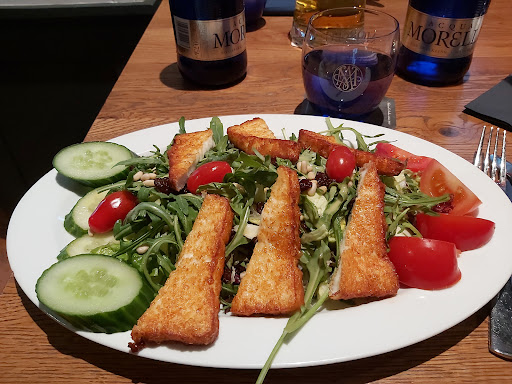 Positives: Geschmacklich war die Hauptspeise gut. Salat als Vorspeise war auch sehr lecker. Nur etwas eigenartiges Dressing Longdrinks hatten viel Inhalt. Keine Mogelpackungen mit Crushed Ice wie in anderen Restaurants. Halloumi war top Sehr schönes Lokal. Ein Mix aus Klassik und Moderne. (Toilette ausgeschlossen)