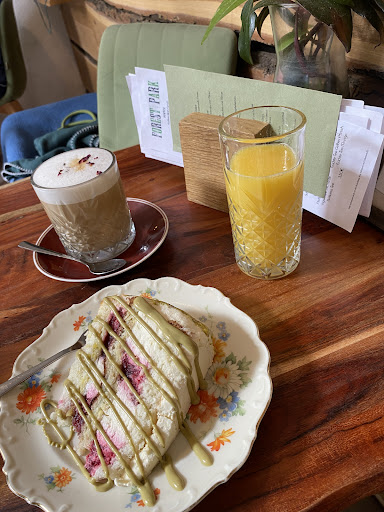 Dazu entdeckt man im Forest Park eigene Kreationen wie einen Grilled-Cheese-Baukasten (!), Fruchtshakes mit Frosties-Cornflakes oder Kinder Country und Eis-Sandwiches - einfach nur mega! Die meisten Frühstücksangebote gibt es auch als vegetarische oder vegane Variante; alles ist liebevoll zubereitet und wird ehrlich-authentisch ohne nerviges Chichi serviert. Der geschmackvoll und intuitiv entspannt eingerichtete Gastraum lädt zum Bleiben und Klönen ein. (Für alle Nicht-Rheinländer:innen und Nicht-Norddeutsche: klönen=gesellig und gemütlich plaudern ;) )