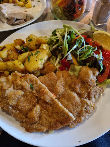 Read moreWir zwei waren das erste Mal dort. Wir wurden dann gleich darauf hingewiesen uns einen Tisch für 2 Personen rauszusuchen. Wir hätten uns zwar gern an einen 4er Tisch am Fenster gesetzt das wurde uns aber höflich und bestimmt verwehrt. Wir bekamen dann eine eingeschweißte A4-Seite als Speisekarte vorn und hinten beschriftet. Die Auswahl war soweit in Ordnung. Als wir dann schon bestellt hatten bekamen wir mit dass es noch eine umfangreichere mehrseitige Speisekarte gibt. Wäre schön gewesen wenn uns die wirklich nette und flotte Bedienung darauf hingewiesen hätte. Die Getränke und das Essen kamen innerhalb kürzester Zeit. Die Portionen waren groß. Geschmacklich war es nicht so besonders. Bauernfrühstück bestand nur aus gebratenen Kartoffeln und Ei inkl. Gürkchen. Gewürz leider Fehlanzeige. Was an Salz bei den Bratkartoffeln fehlte, war dafür beim Steak au four zuviel. Preislich war es okay und die Bedienung nett...