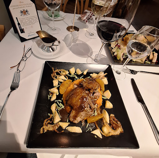 Read moreDer Besuch im Amaroso-Restaurant war hervorragend. Bei Betreten des Restaurants und der Wahrnehmung der Reservierung wurde vom Personal umgehend die Garderobe abgenommen und ordnungsgemäß beiseite geräumt. Nachdem wir zum Tisch geführt wurden, überreichte man uns direkt in Anschluss ohne jedwede Wartezeit die Speise-, sowie Getränke- und Weinkarten. Die Karten waren sehr übersichtlich gehalten und die Auswahl beschränkte sich auf wenige Gerichte in jeder Kategorie. Davon sollte man sich jedoch nicht täuschen lassen, da in solchen Etablissements weniger tatsächlich mehr ist. Nach unserer Findungsphase wurde unsere Bestellung aufgenommen, ohne, dass wir dem Personal ein Zeichen geben mussten. Das Personal war derart professionell, dass unsere Bestellungen gar nicht erst notiert werden mussten, sondern gleich der Küche überliefert wurden. Die bestellten Getränke haben nicht lange auf sich warten lassen. Aufgrund des äußerst zuvorkommenden Services einer Mitarbeiterin befanden sich unsere Gläser stets in einem gefüllten Zustand. (Wir hatten Flaschen bestellt, die gelphlt auf dem Tisch deponiert wurden.) Die Zubereitung des Essen hat deutlich länger gedauert, dafür war das Essen allerdings sehr deliziös und schmackhaft. Bei den Speisen wird nicht nur auf regionale Ressourcen, sondern auch auf hohe Qualität großen Wert gelegt. Das allgemeine Ambiente war sehr schön und hochwertig. Sowohl die Räumlichkeiten, also auch die Möbel machten einen noblen Eindruck. Die Stühle waren sehr bequem, sodass man den ganzen Abend darauf sitzen kann. Die Tische boten mehr als genügend Platz für die Personenzahl. Auch das Besteck wirkte sehr gehoben.