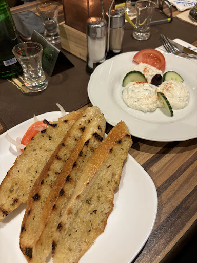 Read moreWir wollten zum Abendessen ein paar Schritte gehen und das Restaurant testen, welches nur ein paar Schritte entfernt ist. Lauer Sommerabend, also top "griechische Verhältnisse". Das Ambiente, wir saßen drin (was aber ok war), war gut. Schicke Bilder und griechische Umgebung. Auf die Getränke haben wir leider schon etwas warten müssen. Das Bier hatte zunächst geschmeckt. Vorspeisen gleich bestellt, wie auch das Hauptessen. Vorspeise kam, grundsätzlich solide, Spinat im Blätterteig, Oliven und Peperoni, lecker. Dann der Weißwein: leider warm serviert an einem heißen Sommerabend!! Dann haben wir die Kellnerinnen gefühlt eine Ewigkeit nicht zu Gesicht bekommen. Kein Essen und keine neuen Getränke. Dann endlich eine Bierbestellung: ein Bier war ok, das andere aber viel zu warm! Ich also zum Tresen, neues Bier geholt mit der Bitte ein Kaltes diesmal zu bekommen: der Kellner kam, aber wieder fast die gleiche Temperatur! Unglaublich (warmer Sommerabend)! Eig waren wir damit schon bedient. Nun kam endlich nach geschlagenen 1,5 Stunden!!! unser Hauptessen! Leider war dies zum Vergessen, bei aller Toleranz! Das Essen wurde dem Preis (knapp 20 Euro) leider nicht gerecht. Alles irgendwie hingeworfen und der Salat davor war eine Enttäuschung. Viel zu lieblos angerichtet, überhaupt nicht Knackig, wenig Geschmack. Schwach! Das Fleisch auf meinem Teller ebenso geschmacklich fad, trotz Metaxasoße, die Fleischqualität leider ungenügend. Alles in allem eine Enttäuschung. Ehrlich gesagt war bis zum Hauptessen alles irgendwie noch hinnehmbar. Aber der Salat und die lange Wartezeit für dieses (!) Essen - nicht ausreichend. Der Ouzo und die Vorspeisen taten zumindest ihren Dienst (Daumen hoch). Wir kommen so schnell nicht...
