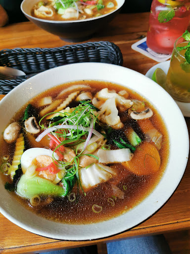 Read moreDer schöne Außenbereich und die Kennzeichnung "vegan" an den Fenstern sowie auf der Speisekarte haben uns spontan hierher geführt. Bei der Bestellung haben wir mehrmals betont, dass wir vegan essen möchten und haben dementsprechend auch vegan gekennzeichnete Gerichte bestellt. Zu den Soßen wurde zunächst nichts gesagt - auf Nachfrage wusste die zunächst nette Bedienung nicht, welche von diesen genau vegan ist. Angeblich scheinbar keine, daher ein Essen dann ohne Soße bestellt. Allerdings ist dann aufgefallen, dass die Allergene bei den als vegan gekennzeichneten Gerichten alles andere als vegan sind. Vegane Ramen kam mit Ei, entfernt wurde es dann erst auf Nachfrage (und Entsetzen unsererseits - veganes Gericht, Betonung vegan war eindeutig) und kein neues Gericht zubereitet. Unsicherheit, ob das Gericht sonst vegan war bestand danach weiterhin. Es ist schade, so eine Erfahrung zu machen und für vegane Menschen ist dies kein "sicherer" Ort. Schade, denn der Außenbereich hat uns...