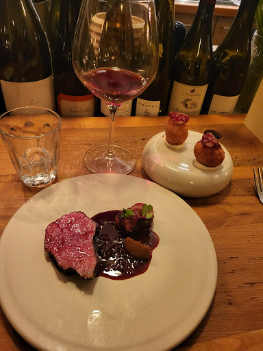 Read moreDer an ein Bistro erinnernde Charme verleiht dem Restaurant ein lockeres und bodenständiges Ambiente. Das Bistro-Thema wird gekonnt in der Speise –und Getränkekarte fortgeführt. Man kann sich zwischen zwei Menüs samt Zusatzgang entscheiden. Die Getränkeauswahl ist angenehm auf das Wesentliche beschränkt. Hier sollte jeder ohne große Überforderung schnell fündig werden. Die Weine sind fair bepreist. Die beiden erhältlichen Menüs passen wunderbar zur herbstlichen –bzw. winterlichen Zeit. Dass hier auf Sterne-Niveau gekocht wird, merkt man sehr schnell. Die Zutaten der einzelnen Speisen sind von ausgezeichneter Qualität und es entstehen kleine Kunstwerke auf den Tellern. Schön ist auch der Mut zu in Deutschland eher exotischen Zutaten wie Szechuan-Pfeffer, der dem betreffenden Gang eine zusätzliche Geschmackstiefe verleiht, ohne fehl am Platz zu wirken. Es gehört schon viel Können dazu, um z.B. Dinkel so zuzubereiten, dass dieser im Mund an Mais erinnert. Nicht zu vergessen die Jakobsmuschel, die durch die geschickte Kombination mit den anderen Zutaten des Ganges geschmacklich an eine Zwiebelsuppe erinnert. Oder der Grünkohl mit seinen phänomenalen Röstaromen. Vermutlich bezieht das Restaurant seine Kaffee-Bohnen von einer lokalen Rösterei. Was sich merklich in den Kaffee-Getränken wiederspiegelt. Mein Cappuccino schmeckte durch die schonende Röstung des Kaffes angenehm mild, von Überextraktion oder all dem Schabernack, den die großen industriellen Röster treiben, war hier keine Spur. Wo viel Licht ist, da ist auch etwas Schatten. Das Sauerteigbrot hätte noch etwas länger ruhen können, um ihm mehr Fluffigkeit zu verleihen. Manche warme Zutat hätte hier und da noch eine Nuance wärmer sein können. Der Aufpreis für den fünften Gang beim vegetarischen Menü ist im Vergleich zum normalen Menü nicht gerechtfertigt. Die Reservierung war leider ein kleines Abenteuer. Wir hatten mehrere Nachrichten per E-Mail und Instagram versenden müssen, da die Reservierungen nicht wie auf der Webseite angekündigt, zum angekündigten Zeitpunkt freigeschaltet wurden. Telefonisch konnten wir leider zum damaligen Zeitpunkt niemanden erreichen. Auch sollte der Preis für eine nicht rechtzeitige Stornierung in der Erinnerungsmail zeitnah aktualisiert werden, da er vom tatsächlichen Menüpreis abweicht. Nichtsdestotrotz hatten wir einen schönen Abend und kommen...