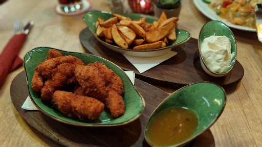 If that is Caribbean taste, I don't want to go there. Really expensive for the amount and quality of the food. The maisreis was not good, quite dry and without taste. It was obvious that was preheated in the microwave or something like that. The chicken was like buying frozen nuggets in the supermarket, not prepared there. The balls of potato?-vegetables? were getting oily with the time and there were 3. In the other dish, the chicken didn't taste well (and was the suggestion of the waiter), only 3 small slices of yuca, some onions, really oily and not really tasty. It was a complete disappoinment. All the dishes of the menu were minimum 13€, and with that amount and type of products you can do the same at home for 5€. I don't recommend it. We pay 34€, two people and the food didn't deserve it.