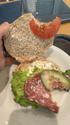 Read moreTypischer Lukas Bäcker, man kann nett sitzen und einen Kaffee trinken. Viele Erfahrungen die ich hier gemacht habe, lassen mich jedoch eher zu einer negativen Bewertung tendieren. Wenn es voll wird (um die Mittagszeit) sind die Verkäuferinnen oft überfordert.Salate sind dann auch schnell aus, manchmal auch die Bockwurst oder Wiener. Die Freundlichkeit lässt sehr häufig zu Wünschen übrig, manchmal wird man sogar ruppig behandelt. Lächeln ist ohnehin Mangelware. Was gar nicht geht, ist dass das Brot angefasst wird nachdem vorher das Geld mit den gleichen Händen angefasst wurde. Ich versuche nunmehr einen Besuch lieber zu vermeiden. Für all das sind die Preise auch zu hoch, andere Bäcker bieten bessere Produkte, einen deutlich freundlicheren Service, bessere Hygiene und...