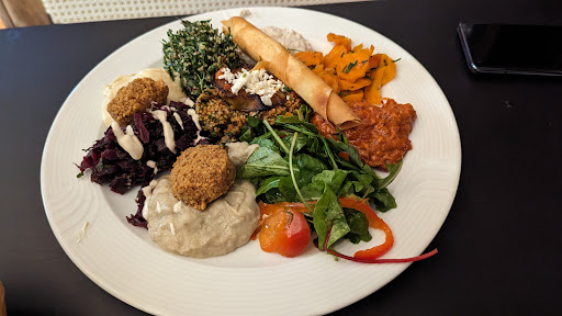 Delicious middle eastern meals. It's not a fancy place, not a wide range of foods, like in a typical restaurant are in the menu, but the food is good, so there seems to be something for everyone. There are 'meze plates'. These are a combination of dips and salads, very very tasty. There are wraps, also quite tasty. And then soup of the day and some hot meals of the day. Vegan/vegetarian options available. All in all quite popular around the area. The inside is cozy and inviting. In good weather one can also sit at tables outside. We like Maza Pita very much. Especially the vegetarian meze variation as it is called and the grilled vegetable wrap, so tasty. Careful: No payment by...