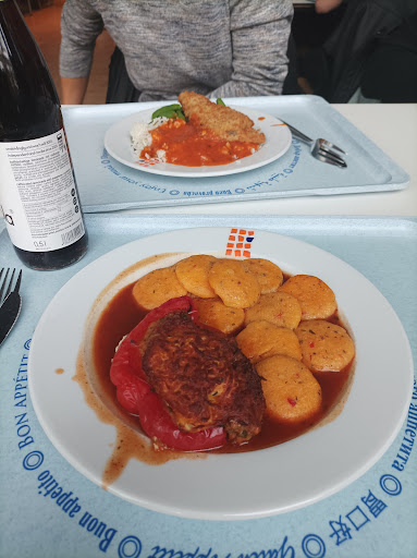 Read moreGehe dort seit Winter 2016 regelmäßig essen, mittags und abends. Seit gut einem Jahr merkt man aber die Sparmaßnahmen (kleinere Portionen, abends manchmal kein Emmentaler mehr sondern nur noch den veganen Ersatz zu den Nudeln, mit Wasser verdünnte Saucen (neulich kam mir sogar der Grießbrei verdächtig dünn vor...), kürzere Öffnungszeiten als vor der Pandemie (damals bis 19:30, wenn ich mich nicht täusche?!) sowie gefühlt weniger aktive Essensausgaben (Personaleinsparung??) . Einige Gerichte, die sie damals regelmäßig angeboten haben, wie z.B. Frischkäse-Röstoppers sind wohl ausgestorben, aber so ist nunmal der Lauf der Dinge. Manchmal wäre es auch wünschenswert, wenn die veganen und vegetarischen Gerichte wieder kalorienhaltiger/däftiger wären, kann aber sein, dass die das mittlerweile gemerkt haben und es sich schon gebessert hat. Zu guter Letzt darf man natürlich auch nicht die hauseigenen "Brückentage" vergessen, die seit jeher bspw. dazu führen, dass schnell mal eine ganze Woche die Mensa geschlossen bleibt, wenn in dieser ein...