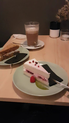 Read moreSo ein tolles Café! Nach einem langem Spaziergang hier gegen 18:00 Uhr mit zwei Hunden hier eingekehrt. drei weitere Hunde waren bereits vor Ort. wir konnten in einen kleinen abgetrennten Bereich sodass die Hunde sich nicht sehen konnten und es somit ein entspannter Aufenthalt war. Die Mitarbeiter waren extrem freundlich und herzlich. sehr sehr schön. Die Kuchen werden alle selbst gebacken und sind soweit ich gesehen hab alle Vegan. Meine Creme-Waldfruchttorte hat aber exzellent geschmeckt. Genauso der Möhrenusskuchen. Wirklich sehr sehr zu empfehlen. Der Kakao war auch lecker, kommt an den Kuchen aber nicht ran. Er wird mit Hafermilch gemacht kann aber auf Nachfrage auch mit einer anderen Milch (u.A. auch Bio-Vollmilch) zubereitet werden. Die Preise sind auch angemessen und ich war rundum zufrieden. Wir werden sicher...