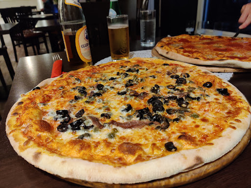 Read moreHabe vor Jahren mal um die Ecke gewohnt, abet noch heute ist das für mich die beste traditionelle Pizzeria der Stadt. Für die hauchdünnen supergünstigen Monsterpizzen (reicht bei normalem Hunger für zwei Personen - daher gegen kleinen Aufpreis auch mit zwei verschieden belegten Hälften möglich) die in einem Rondellsteinofen knusprig gebacken werden, fahre ich noch heute manchmal durch die halbe Stadt, da es leider keinen Lieferservice gibt, man aber vorbestellen kann. Auch ohne vorbestellen hab ich hier inklusive Bestellung selbst zu Stoßzeiten nie länger als 15 Minuten gewartet. Mittlerweile gibt es außerdem auch genauso leckere komplett vegane Pizzen 👍 Wenn man will kann man dem gesamten Prozess vom Ausziehen des Teiges über das Belegen bis hin zur Karusselfahrt im Steinofen zusehen. Die meisten Zutaten sind sichtbar aufgestellt, obligatorische Kühlware wie Meeresfrüchte wird direkt vor einem aus dem Kühlschrank geholt sodass man sich selbst von ihrer Frische überzeugen kann. Am Eingang stehen noch kleine Schüsselchen mit deren Inhalt man seine Pizza weiter verfeinern kann wenn man mag.