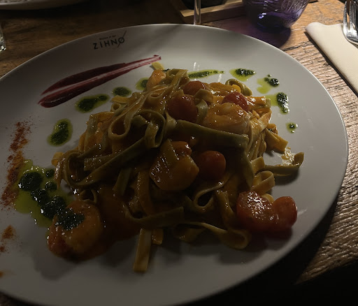 Read moreElitäre Aufmachung und wirklich überhaupt nichts dahinter! Essen: Die Auswahl ist leider sehr klein. Für mich als Schwangere gab es so gut wie keine Auswahl, da sämtliche Fisch- und Fleischgerichte nicht durchgebraten sind (auch nicht gehören, ich möchte nur kein durchgebratenes Steak à la Schuhsohle und Beef-Tartar kommt nun mal nicht infrage). Trüffel-Spaghetti waren gut, allerdings steckt hier keine hohe Kunst dahinter. Das vegetarische Hauptgericht war mehr als fad. Das Thunfisch-Steak meines Partners war komplett überwürzt und versalzen, vom Thunfisch nichts zu schmecken. Getränke: Keine alkoholfreien Cocktails auf der Karte in einer Lokalität wie dieser ist ein Armutszeugnis. Auf Nachfrage wurde ein alkoholfreier Cocktail zum Preis des alkoholischen Cocktails serviert. Die Aperitifs meiner Freunde waren langweilig und schal (schon ewig offene Flaschen?), zudem lieblos angerichtet. Service: Wir wurden von einer netten jungen Frau bedient. Sie schien recht neu zu sein, allerdings wurde sie scheinbar überhaupt nicht eingewiesen. Das Besteck wurde einfach irgendwie hingelegt. Bei leeren Getränken wurde nicht gefragt, ob wir noch etwas möchten. Nach der Hauptspeise wurden alle Wassergläser einfach abgeräumt und die Frage, ob wir noch etwas trinken oder eine Nachspeise möchten, kam einfach nicht. Es kam dann auch einfach keiner mehr an den Tisch, so dass wir irgendwann gezwungen waren, im Gehen am Tresen zu bezahlen. Ich will auch nicht zu kleinlich sein, aber sowas geht in einem Lokal dieser Preisklasse garnicht. Genauso wenig wie die mit Wasserflecken übersäten Gläser, man will hier doch ach so fein sein?! Eine Sache, die uns auch sauer aufgestoßen ist: einen Gruß aus der Küche hat das Zihno scheinbar nicht nötig, nicht einmal etwas Brot mit Butter. Geht garnicht bei dieser Preisklasse und diesem vorgeblichen Niveau. Ich kann von einem Besuch nur ganz dringend abraten, hier muss die Geschäftsführung dringend...