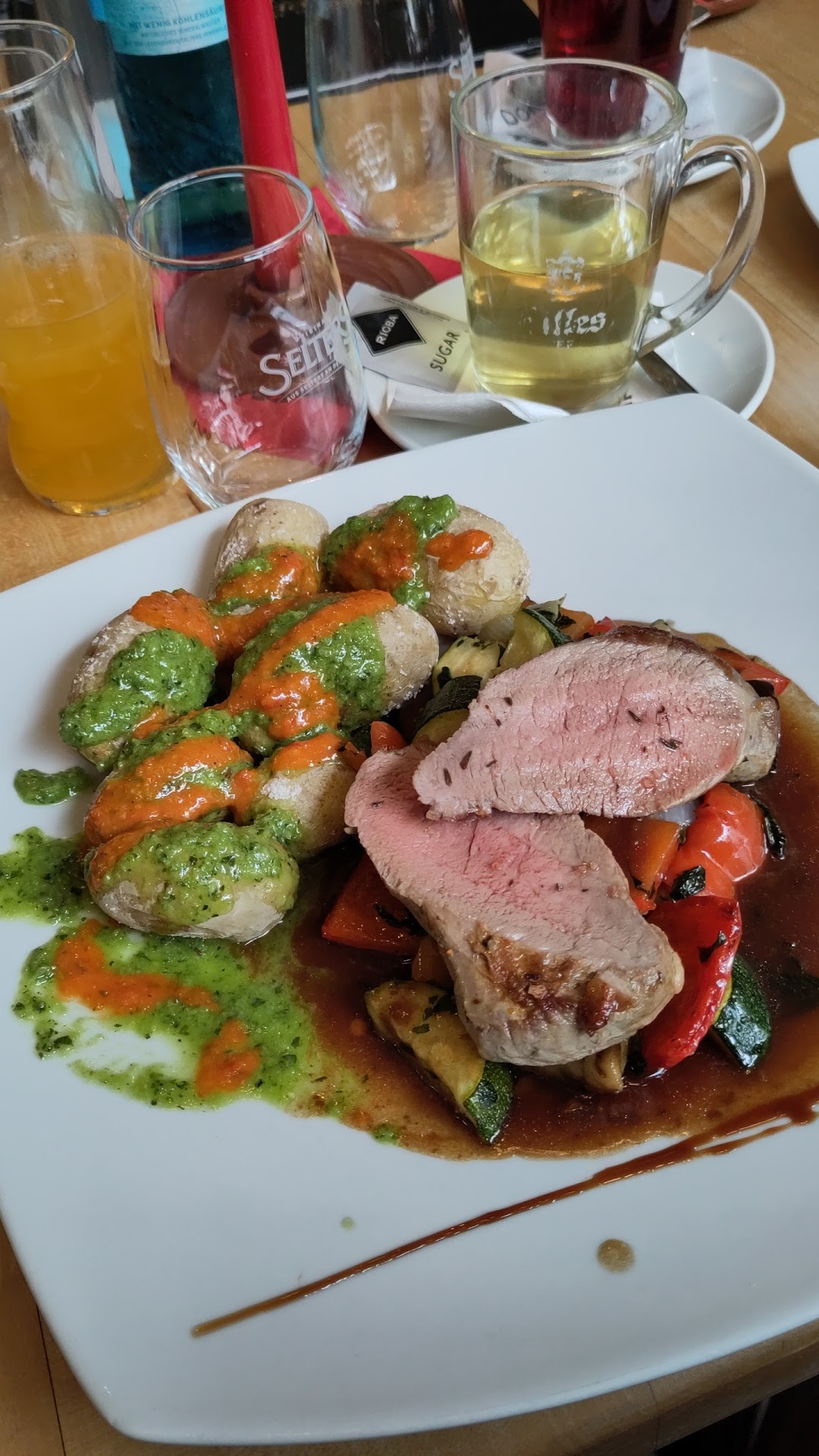 Um so erstaunter waren wir, dass wir im Anschluss nach dem Bezahlen von der ersten Bedienung ( sie gab uns am Anfang den Hinweis, dass draußen kein Tisch für 6 Personen frei wäre ) belehrt wurden.