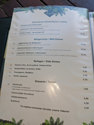 Das Essen ist ein schlechter Witz. Nix selber gemacht. Und die Qualität war eine Katastrophe. Die Klöße aus der Packung und nicht gar, Pilze aus der Dose ohne Geschmack, und der Hirschbraten fertig aus der Tüte. Und das allea schlampig auf dem Tisch angerichtet. Ich bestellte den Hirschbraten für 17.00 Euro und bekam ein Kantinen Essen, dass einfach nur abartig war. Vermutlich ist der Koch alleine und muss deswegen auf Fertigprodukte zurückgreifen. Aber bitte dann andere Preise. Das einzige was geschmeckt hat war die Garnitur.