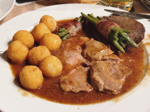 Drinks were good. Food was fair. Location is great! This restaurant management team seemed to have the same attitude towards Americans as many establishments in Leipzig---put us in a tucked away corner table in the back, away from the locals!! One positive attribute for our visit was the exceptional service and friendly attitude of our server...unfortunately, I can't recall his name, but he was a brunette originally from Budapest who previously worked on cruise ships. He was very empathetic to our unpleasant encounter when a local female resident approached our US group of 7 people, not once, but twice, as she requested that we limit our laughter and quiet our conversations! This obviously is not the fault of the restaurant, but it does seem to be the common theme supported by many local venues. It's unfortunate that we travel thousands of miles across the Atlantic to increase revenue and support local vendors with such enthusiasm, but are made to feel very unwelcome in your city.... it is our hope that as tourism from the US to Leipzig continues to grow, the cultural differences will be better aligned and appreciated 🇺🇸💞🇩🇪 We all had such positive comments about the unique and fun atmosphere in the Market Square, only to be marred by being shunned by the community 😥 Important to note that this corner restaurant was nearly empty most often, especially the patio area, while a competing restaurant just around the corner was jam packed with customers on their patio and indoor seating area at all times, compared...
