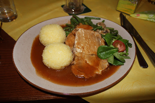 Restaurant has a wide selection of schnitzels and steaks to choose from. Several salads and also vegetarian options available. Food was served in a timely manner and portion were very large, all of us loved the meal the we chose.