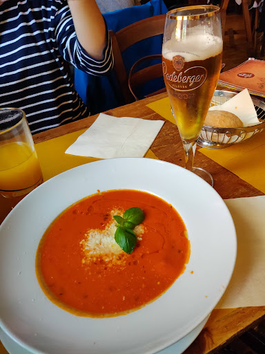 Read moreUNTER ALLER SAU! Würde diesen Laden nie mehr betreten! Über das merkwürdige Ambiente und den extra lahmen Service ist ja noch hinweg zu sehen. Aber: unsere Getränke hatten quasi keine Kohlensäure und unser Essen kam dermaßen zeitversetzt, dass man das schon nicht mehr gemeinsames Essen nennen kann. Wir hatten eine Tagliatte mit Steinpilzen und eine Pizza bestellt. Die Nudeln kamen ca 10 Minuten vor der Pizza und da meine Begleitung und ich gemeinsam essen wollte, wartete er. Nur um dann festzustellen, dass sich in der Pasta Hackfleisch befand?! Dies hat er herausgepickt damit wir wenigstens zusammen essen können, denn neu zu bestellen hätte wohl nochmal eine Ewigkeit gedauert. Meine Pizza war semi gut. Als wir schließlich fast 15 Minuten auf unsere Rechnung warten mussten, wollten wir lediglich bei der Hausherrin unseren Kritikpunkt wegen des Fleisches im Essens äußern. Aber ihre Reaktion war einfach nur schockierend: sie fotzte uns regelrecht an, dass wir Betrüger wären und sofort etwas hätten sagen sollen, obwohl wir lediglich anmerken wollten, dass wir das Fleisch in der Pasta nicht erwartet hatten und dies schade fanden. Meine Begleitung und ich wollten zusammen essen und haben es deshalb nicht zurück geben lassen, aber das wollte die aggresive Dame ja nicht hören. Sie ließ uns weder ausreden noch entschuldigte sie sich ein einziges Mal für unsere Unannehmlichkeiten! Sie wurde sogar richtig unhöflich, erhob ihre Stimme und die Nebentische bekamen auch alles mit. Wir haben das Restaurant mit einem schlechten Gefühl verlassen und ich würde jedem abraten dort essen zu gehen. Für geschmacklich mittelmäßige aber überteuerte Pizza kann ich auch zuhause bestellen. Unfreundlich, inkompetent und einfach nur schlecht. Wenn ich könnte würde ich -5...
