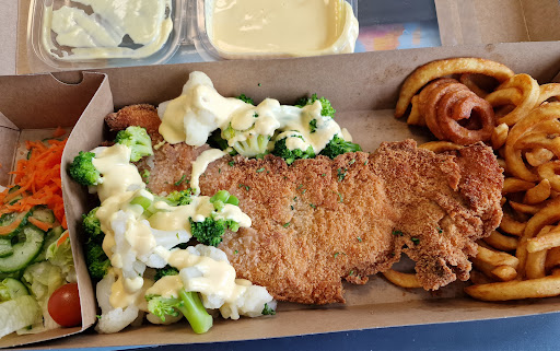Das Essen ist sehr lecker, die Preise sind für Schnitzel wirklich fair, würde ich sagen. Die Sitzgelegenheiten sind sehr bequem und das Schnizz liefert aus (leider nur Innenstadt und Umgebung). Ich bin rundum zufrieden und kann das Schnizz guten Gewissens weiterempfehlen. Sogar meine Freundin - kein Schnitzelfan, die ich heute überreden konnte, war begeistert und würde jederzeit wieder mitkommen.