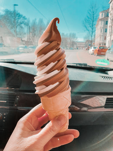 Es gibt nicht nur Softeis sondern auch Eis zum Mitnehmen, Eiskaffee, Milchshakes, usw. Im Gegensatz zu dem, was man auf meinem Bild sieht, als der Laden geschlossen war, kann die Warteschlange bei schönem Wetter ziemlich lang sein. Aber es lohnt sich, da das Eis lecker ist und der Preis angemessen ist.