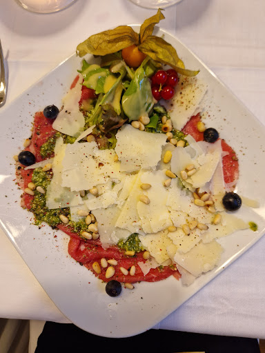 Ich war gestern am späten Abend (ca.23:30) mit einer Freundin in dem gemütlichen Innenhof und haben uns für das Rindercarpaccio entschieden (also nur was kleines,der Appetit war da)