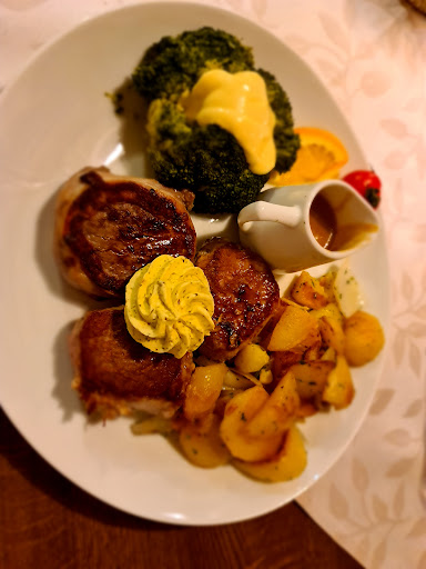 Read moreDas Essen von zwei von uns war echt super und wäre das dritte Essen auch so gut gewesen, hätte es sicher 5 Sterne gegeben. Allerdings hatte einer das Pech, dass das Fleisch einfach nicht zu zerkauen und schlucken war und das bei einem hohen Preis für das Gericht. Natürlich kann man da auch immer mal nicht so super Fleisch bekommen haben. Daher haben wir auch Bescheid gesagt. Die Bedienung hat versucht entgegen zu kommen und einen Cappucino dafür angeboten. Allerdings hatten wir da am Abend keine Luwt mehr drauf. Alternativ hat einer von uns einen Schnaps bekommen. Allerdings wäre bei der hohen Summe für das Gericht ein Preisnachlas meiner Ansicht nach angemessen gewesen. Die Beilagen waren zwar lecker, aber der Hauptteil der Mahlzeit war einfach...