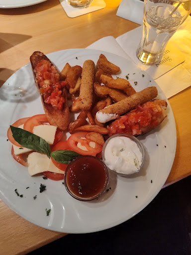 Read moreAls wir rein kamen, war man bemüht uns einen Platz zu klären, obwohl wir nicht reserviert hatten. Dafür sind wir dankbar. Aber leider sind wir vom Preis - Leistungsverhältnis mehr als enttäuscht! Auf den Fotos ist einmal der Schnabbulierteller: eine Kinderhandvoll fettig triefende Kartoffelspalten, ein paar wenige Mozzarellasticks, die gut schmeckten, die Tomaten waren wässrig, und die beiden kleinen Bruschetta's waren OK. Alles in allem schmeckte und wirkte wie fast schon minderwertig. So, als wäre das alles von Ja!, dieser Discount-Marke. Und vor allem echt verdammt wenig! Der Preis von 13,90€ ist absolut unverschämt! Die Kinder hatten die kleine Margherita. 7,90€!!! Wie auf dem Foto zu sehen, ist die echt heftig winzig. Klar, wir haben die kleine Pizza bestellt, aber die Durchmesser der Pizzen sind in anderen Läden merkbar größer. Das Personal war allerdings sehr nett und bemüht. Haben am Ende auch noch einen kleinen Drink bekommen, was wir nett fanden. Da kann man nix sagen. Danach musste ich leider nochmal was zu essen...