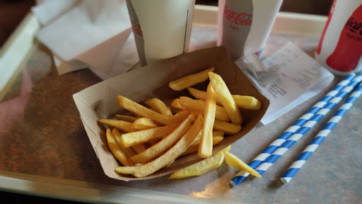 Dynamite Burger total trocken, viele Knorpel und ein UNGETOASTETES Bun, Doppelcheeseburger waren etwas besser, aber genauso trocken. Pommes waren in den Menüs nur eine kleine Portion erhältlich (große Portion nicht möglich) und ehrlich gesagt, waren sie leider für die Tonne (nicht durch, schwach gewürzt und geschmacklich nicht Pommes würdig), nichts zum Nachwürzen auf den Tischen. Getränke schmeckten nur nach Wasser mit der Farbe der Limo, Tische waren nicht sauber, es war echt kalt da drin und für die schlechte Qualität...