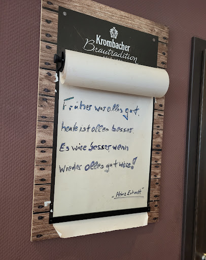 Read moreEine absolute Katastrophe… Wir wurden am Anfang sehr unhöflich empfangen und in die letzte Ecke gesetzt die unsauber war und wo den ganzen Abend der Hundenapf nicht weggeräumt wurde. Die Kellnerinnen sind eine Katastrophe. Sehr unfreundlich und langsam. Als dann die Freunde der einen Kellnerin genommen sind waren alle Gäste nebensächlich. Die Kellner waren sehr unfähig und hatten die Haare komplett im Gesicht hängen. Das Essen war ganz okay aber trotzdem haben wir nicht damit gerechnet 50 Minuten auf 2x Reibekuchen zu warten. Es wurde uns am Eingang gesagt das 2 Tische vorher essen bekommen ( ganze 8 essen !!!) Die Küche ist sehr sehr langsam und die Portionen waren sehr winzig. Achja und Speisekarte o.ä. Wurden uns auch nicht gereicht.