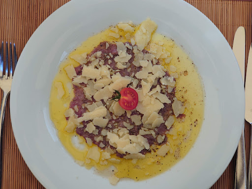 Wir wollten eigentlich Pizza essen, aber an diesem Tag gab es die Karte nicht – stattdessen wurde uns eine Auswahl an edlem Fleisch mit Trüffel präsentiert, was für unsere Kinder völlig unpassend war. Als wir daraufhin nach dem ersten Getränk, das bereits auf dem Tisch stand, einfach wieder gehen wollten, wurde uns dies nicht gestattet. Stattdessen wurden uns “Umsatzeinbußen” vorgeworfen, weil wir einen reservierten Tisch hatten, aber offensichtlich nicht genug bestellten. Das war wirklich frech und unprofessionell!