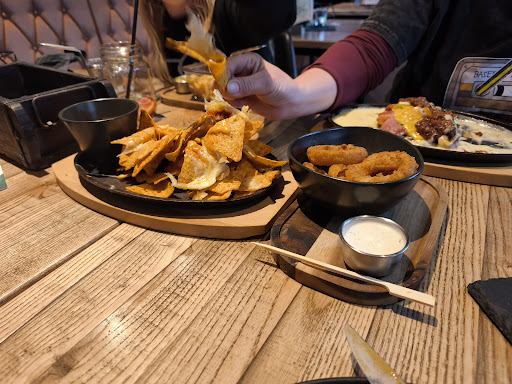 Die Einrichtung hat uns wirklich gut gefallen und war wie ein Lokal in den USA. Drinnen war es eine Art westernstyle und es gab noch eine Außengastro. Sehr einladen sauber und mit Wohlfühlathmosphäre.