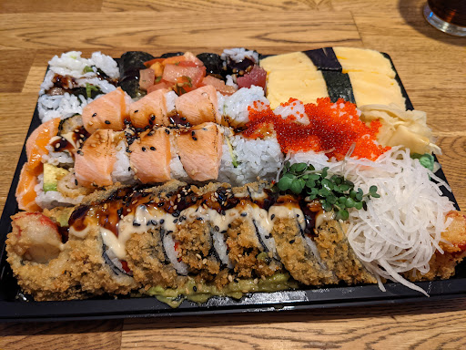 Nun zum Essen. Dieses kam nach 1h und 15 Minuten. Der Laden war zu 2/3 gefüllt. Qualitativ für den Preis kein Highlight. Das Sushi ist allgemein sehr fade. Das Lachstatar war sehr gut wenn auch zu grob geschnitten. Meine Partnerin (Vegetarierin) hatte für uns beide bestellt aber ausdrücklich alle Gerichte getrennt aufgezählt. Nun bekamen wir alle 6 Sushi Gerichte auf zwei Tellern völlig durchmischt an den Platz.