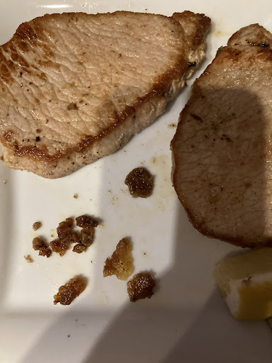 Die Präsentation der Speisen scheint zwar traditionell gerichtet, allerdings scheint es in der Küche jemanden zu geben, der leichte Ungewöhnlichkeiten fabriziert, die mir unnötig erscheinen. Dass auf dem Fleisch ein Häufchen Sahne serviert wird, kann man sicherlich nachvollziehen - hat man schon mal irgendwo gesehen. Allerdings störte mich, dass unter der Sahne eine Zitronenscheibe lag, was man erst merkt, wenn man ein bisschen rumstochert. Ich würde gerne auf Anhieb sehen, was ich da esse. Die Soße war etwas wässrig, das kann man sicherlich so machen, ist aber Geschmackssache. Vielleicht deshalb die Sahne? Ich bevorzuge es, wenn die Soße bereits fertig ist und ich es mit der Sahne nicht noch im Teller verdicken muss.